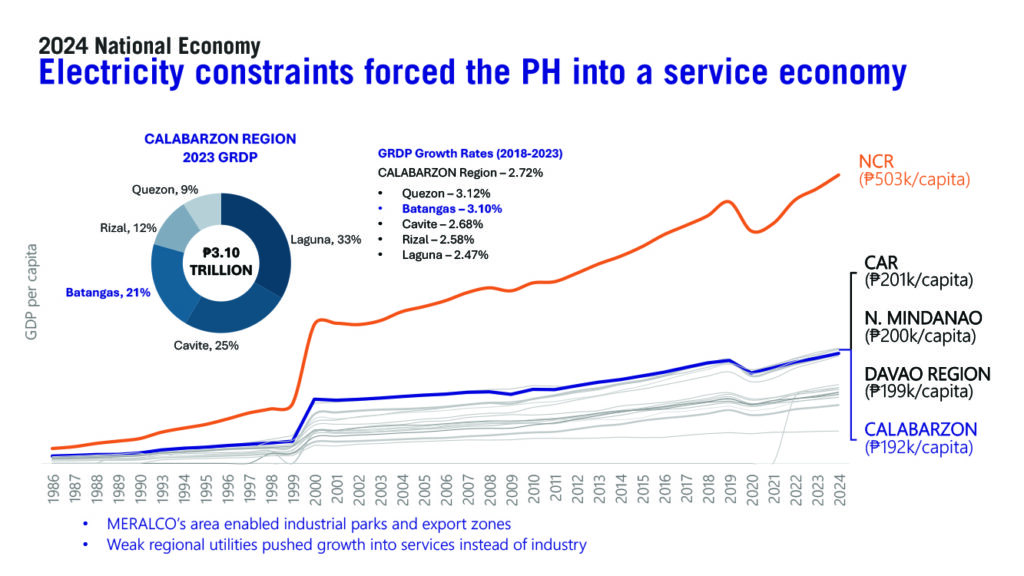 CALABARZON remains a key contributor to the national economy, accounting for approximately 49% of total industrial output. Experts suggest that this figure could rise further with improved and stable electricity supply in key provinces such as Batangas—strategically located near Metro Manila and home to a major seaport for export activities.